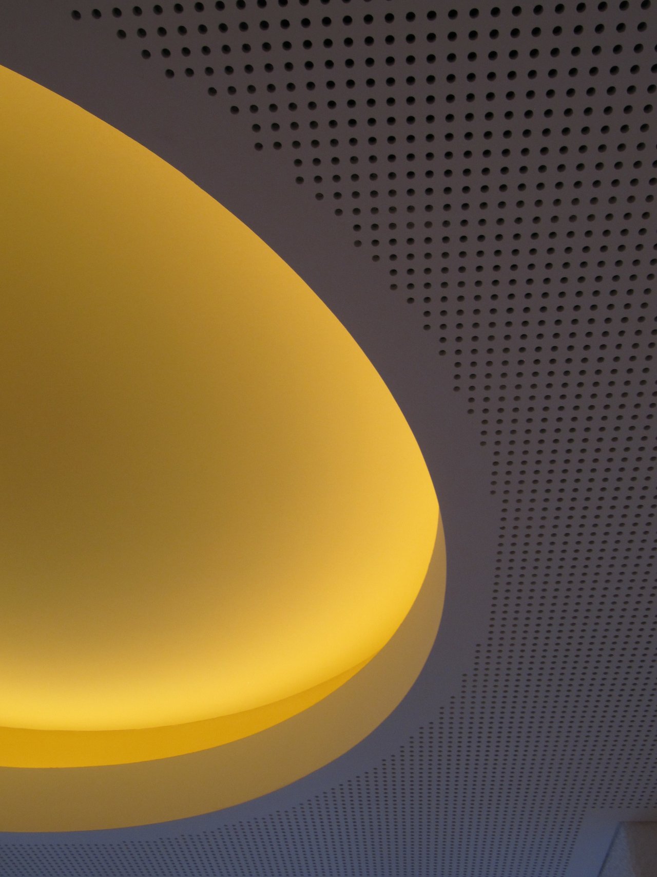 Die Gemeinschaftsbereiche mit Foyer, Empfang, Multifunktionssaal und Cafeteria wurden umgestaltet. Ein zentrales Element ist hier das neue Lichtkonzept, das eine einladende und angenehme Atmosphäre schafft. Durch den gezielten Einsatz von natürlichem Licht, gestalterischen Beleuchtungselementen und modernen Akustikpanelen wird nicht nur die Funktionalität der Räume verbessert, sondern auch das Wohlbefinden der Bewohner/-innen und Mitarbeiter/-innen gefördert.