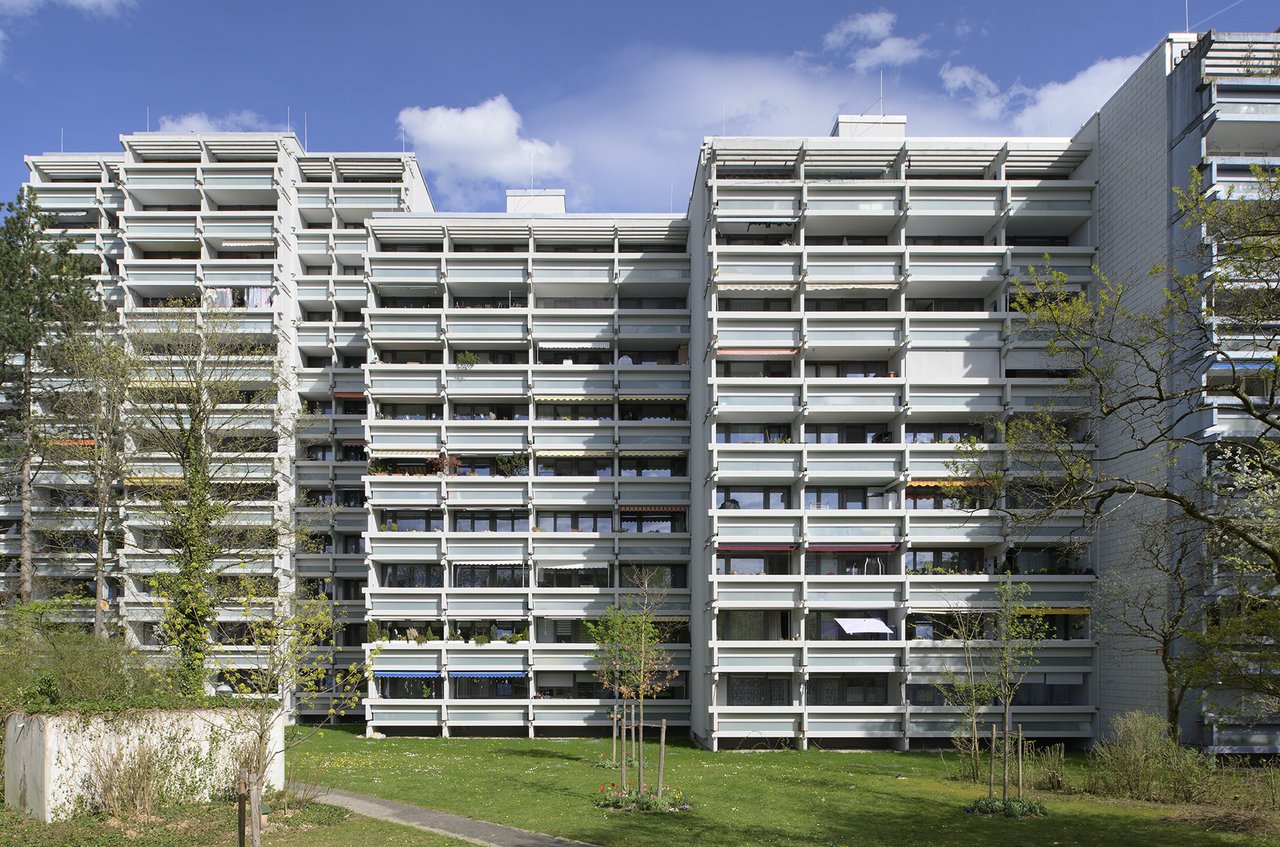 Das zurückhaltende Farb- und Gestaltungskonzept findet sich bei allen Häuser des Gesamtensembles wieder.